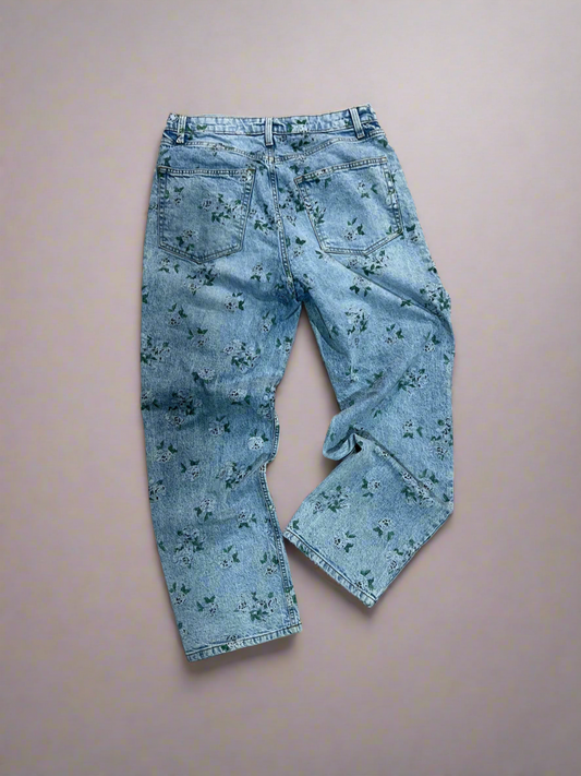 Vintage Flower Jacquard Print Jeans 34